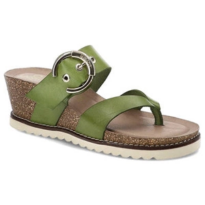Grüne Pantoletten Yokono Bequeme Damenschuhe mit Keilabsatz