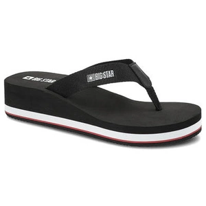 Schwarze Zehentrenner Big Star Bequeme Damenschuhe mit Keilabsatz