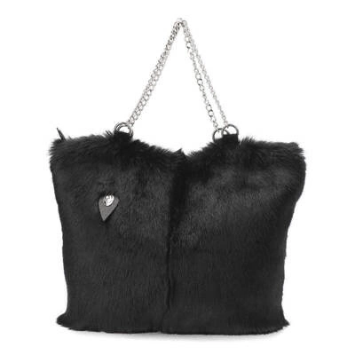 Schwarze Handtasche Luka-Pelli Mit Echtem Kaninchenfell